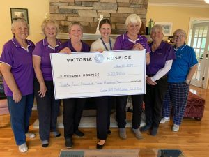 A cheque for $22,710 was presented to Carley Gibson of Hospice on November 10, 2023. Members of the Field Day Committee present: L-R Gill Hawkins, Wendy Swonnell, Carol Thompson (Co-ordinator), Doreen Hall (Co-Ordinator), Alison Farquhar, Barbara Rainey