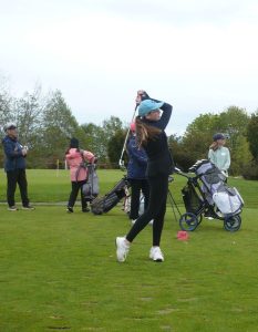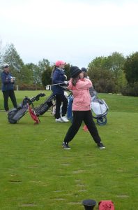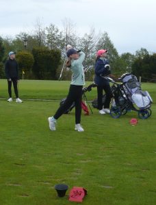 TEEING AREA: The girls battled the elements showing off some lovely swings on the tee, even a BIRDIE and an almost CHIP-IN!!